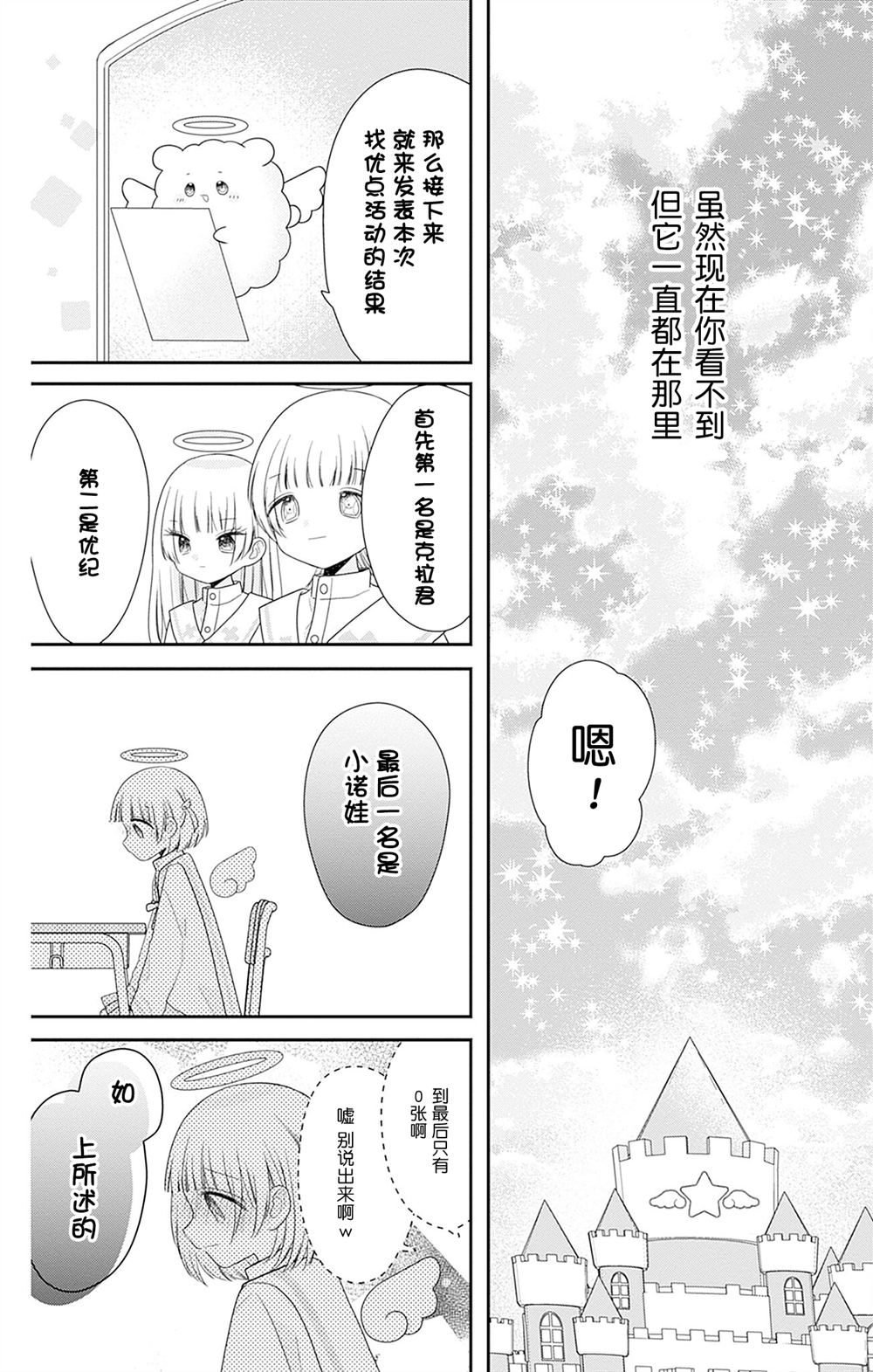 不久之前去世的诺娃,突然被邀请前往位于天国的天使学园上学!在那里,天使们以2人1组,目标是成为独当一面的天使。结果诺娃竟然和剩下的被称为「恶魔」的自私的孩子组成了一队…? (同时收录)番外篇