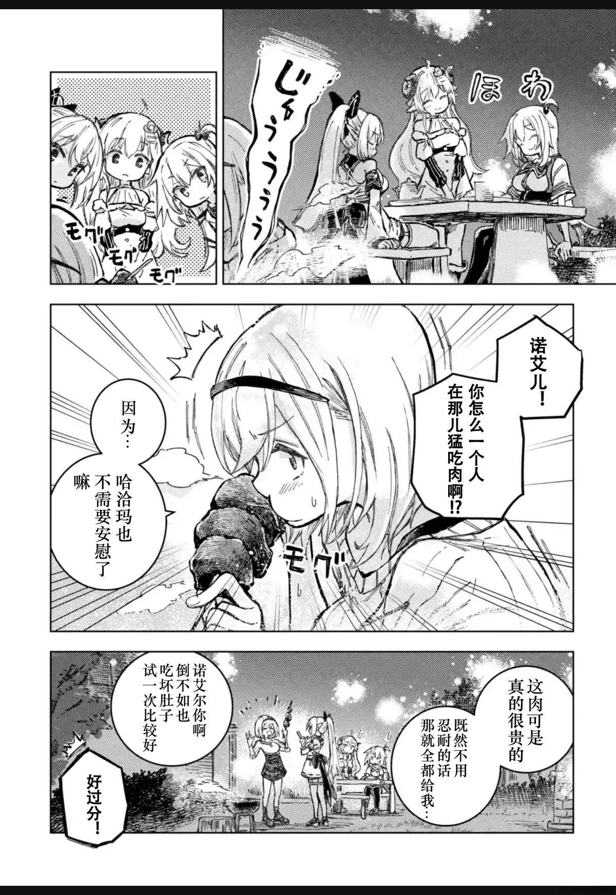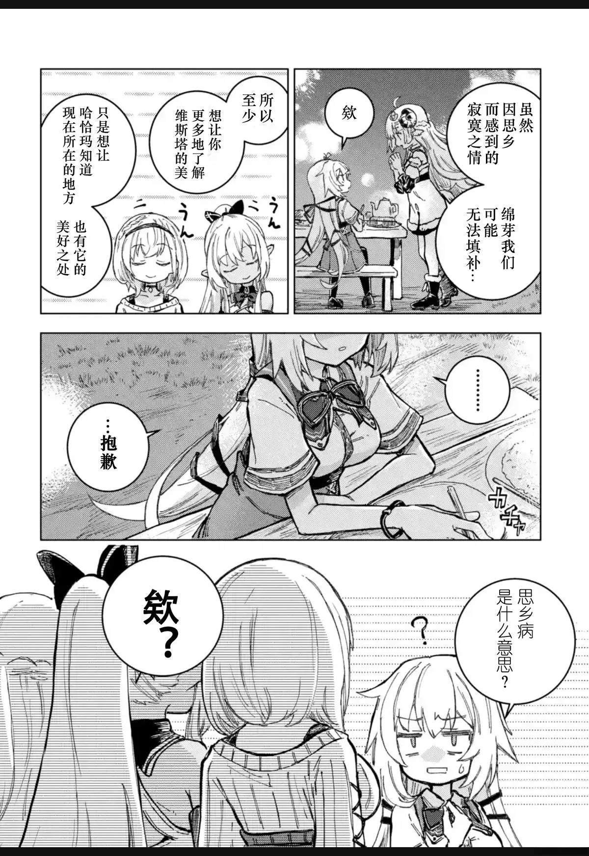 因为吃下自己亲手做的料理而受到冲击,被传送到异世界的少女「赤井心」,以及在异世界经营牧羊业、头上有角的少女「角卷绵芽」,还有人气咖啡馆「マチカドカフェ」的招牌女服务员「不知火芙蕾雅」,以及骑士团的团长「白银诺艾尔」。 少女们以「异世界的食谱」为契机相遇,在编织出无数笑容的同时,度过了一段幸福的时光[]光。这部作品以异世界创造企划「Hololive Alternative」的世界为舞台,实力派作家Johne将可爱又欢乐地描绘出这四位少女的异世界闹剧烹饪喜剧[-折叠]