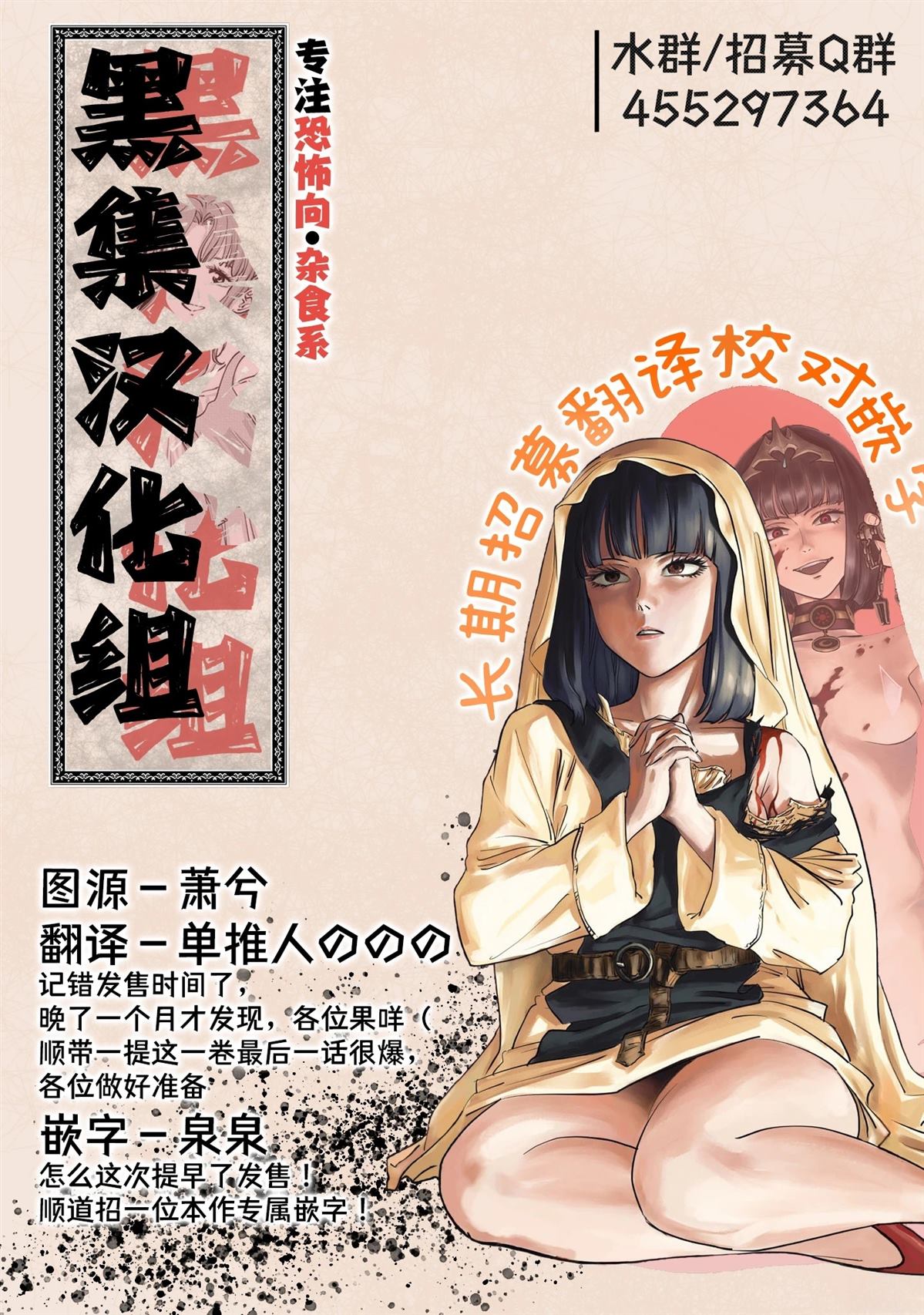 天明5年,尽管世间正因饥馑缺乏食粮,在主人公可畏居住的山村因为可以狩猎野生动物比其他地方要稍微好上几分。但是,在某一日有一位在山林中迷失的男人来到了村里。尽管可畏诧异于这个男人不愿和自己对上视线,仍和家人一起招呼了他。然而当晚,村外的野兽始悄悄潜入了村中…