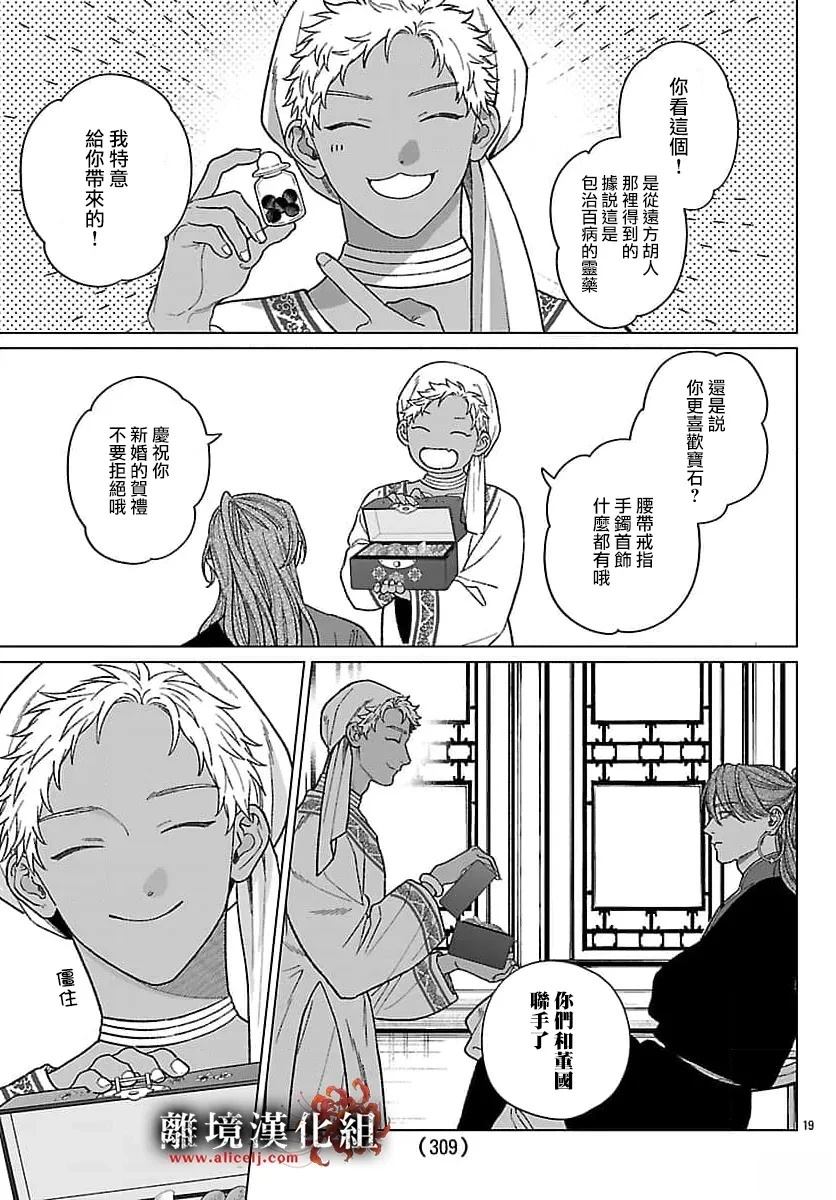 董国在先王驾崩后,权力逐渐式微。周围民族兴起,董国陷入领地争夺的苦境。 为暂时平息战乱,储备国力,董国与雍国结盟,并派出第三皇女珠姬前往雍国和亲。 乱世之中,由被舍弃的少女的复仇物语,即将拉序幕——
