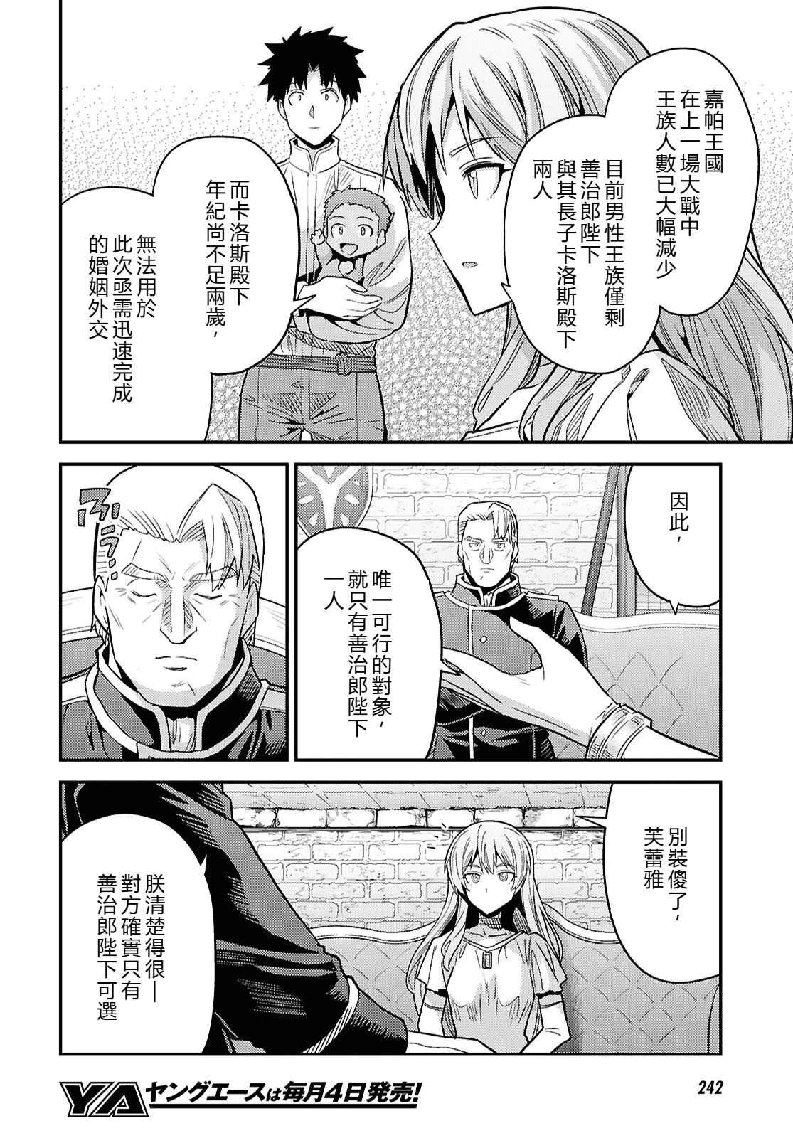 山井善治郎是在现代日本生活的一个上班族。某一天的早晨,善治郎突然被召唤到一个恐龙昂首阔步的亚热带异世界——嘉帕王国。召唤他的,是嘉帕王国的女王奥菈一世。召唤善治郎的女王奥菈,向善治郎提出“请和我结婚,并在这个世界生活”。理由是善治郎为“一百五十年前,为了爱情去往异世界的嘉帕王族的末裔”。虽然国内的贵[]贵族中也有继承王室血脉的结婚候补,但如果让他们成为夫婿的话,会使“男尊女卑”现象很严重的嘉帕王国,出现女王和夫婿之间权力斗争的可能性相当高。因此,对善治郎的请求[-折叠]