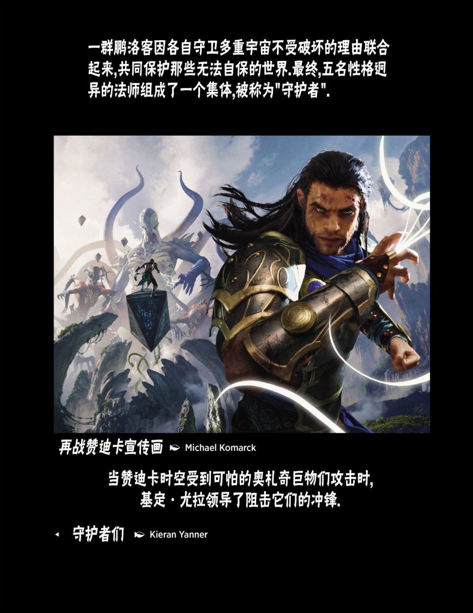 万智牌(MTG)是1993年威世智公司发行的,世界上第一款集换式卡牌游戏。据不完全统计,目前官方已出漫画13部45本。出于美观度考虑,还是选择由最新系列往前回溯,但怕大家对MTG漫长的历史缺乏了解,所以先行奉上人物介绍(《守护者崛起》)。